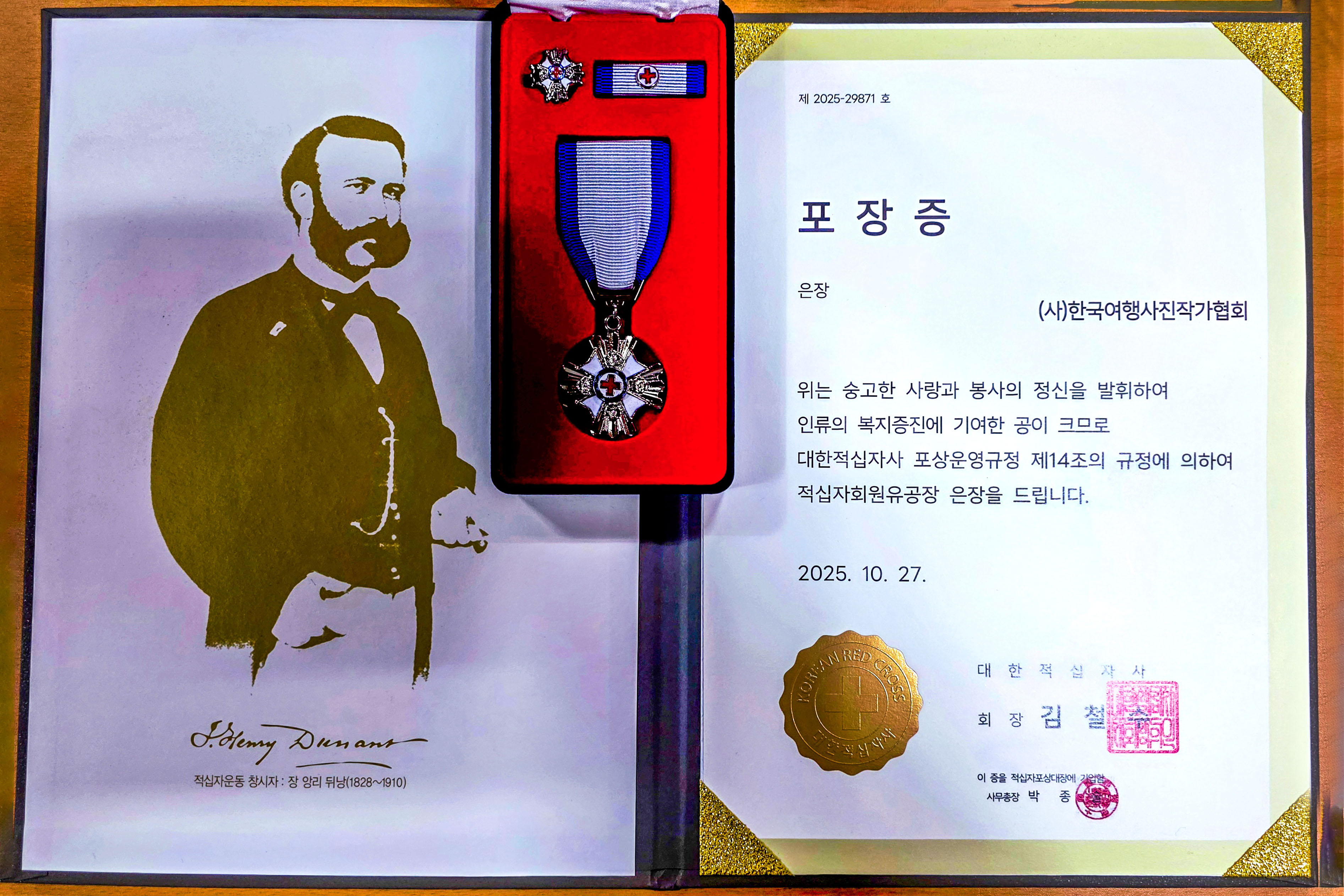 대한적십자사는 이 공로를 인정하여, 2025년 10월 27일 (사)한국여행사진작가협회에 ‘적십자회원유공 은장’을 수여했다.